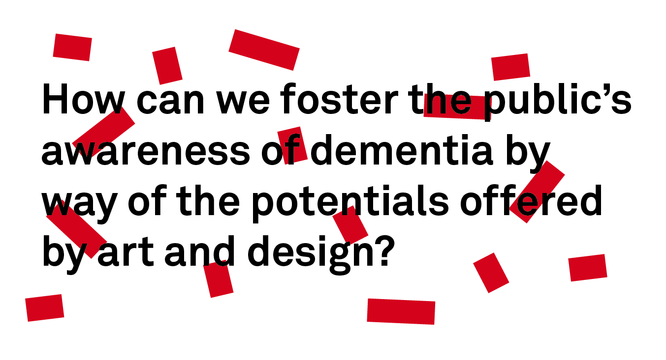 The project seeks to raise public awareness of the situation of people living with dementia. Artistic concepts and strategies offer new approaches and new perspectives on the topic. In various ways, art and design can call attention to the challenges people with dementia face everyday, by, for example, destabilizing the normal, unquestioning trust that people who do not live with dementia place in their everyday perceptions.